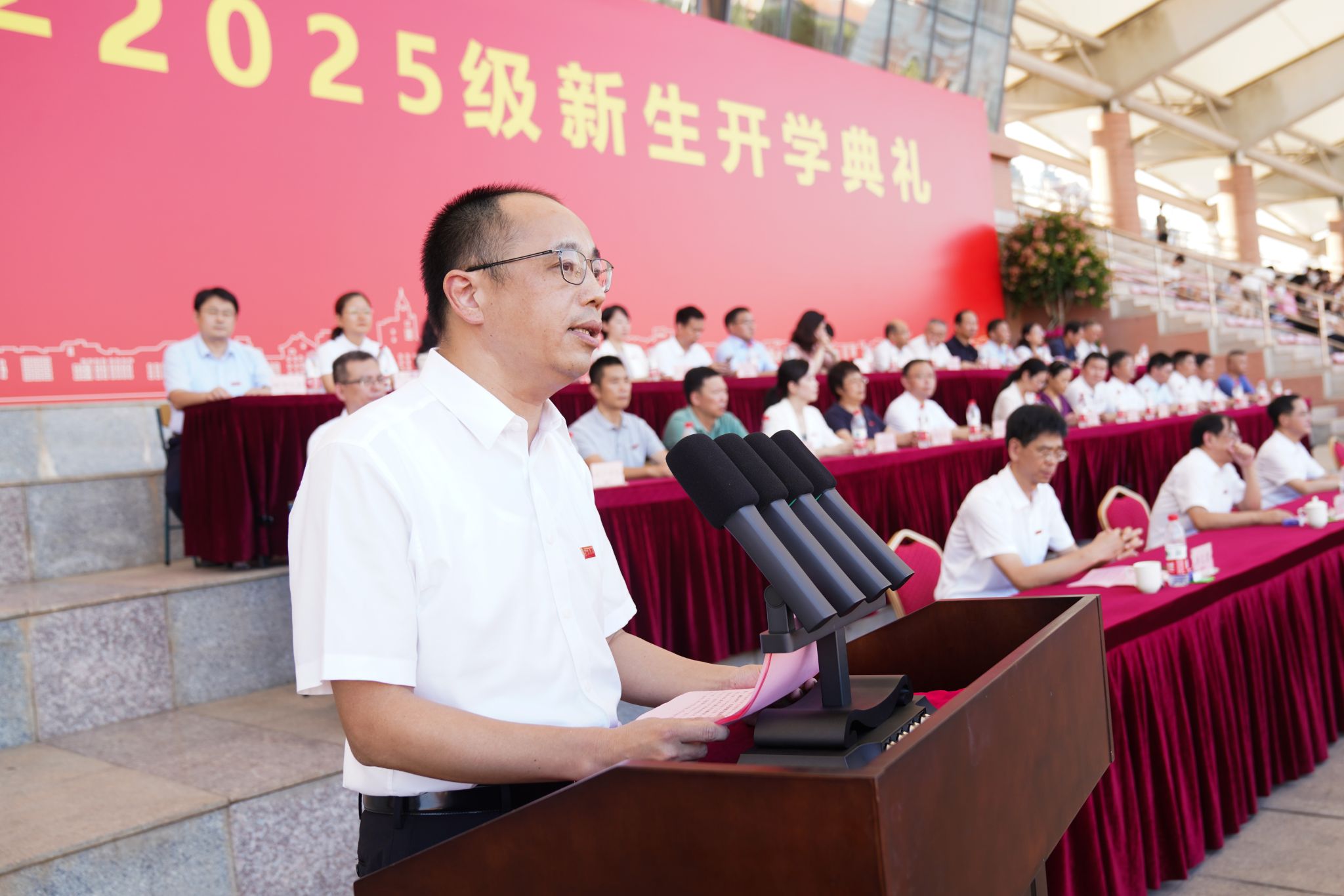 9月12日下午,我校在庄重文夫人体育场举行2025级新生开学典礼。全体校领导,学校有关部门、各学院负责人及2025级新生参加大会。大会由校党委副书记洪文建主持。